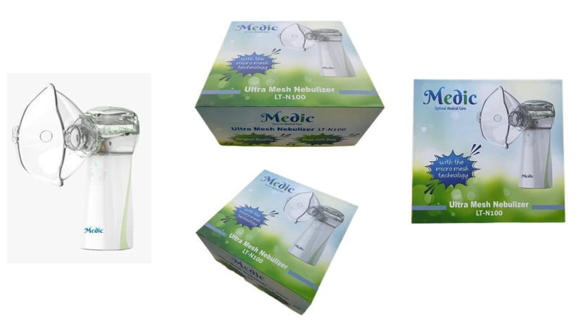 The working principle of the nebulizer is driven by the rapid oscillation of the circuit, which makes the piezoelectric ceramic transducer oscillate resonantly, thus driving the rapid oscillation of the microporous metal mesh. It converts the electrical energy into mechanical energy and generates ultrasonic vibration, the shock wave squeezes the liquid in the medicine cup, making the liquid pass through tiny mesh on the metal mesh and pop-up quickly, forming countless tiny nebulized particles, which are guided to the patient's respiratory system through the inhalation mask, so as to achieve the purpose of inhalation treatment.