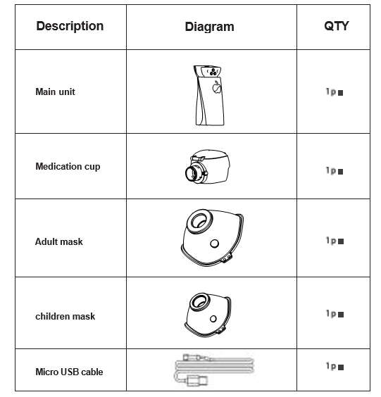 It mainly consists of a main unit, a medication cup,two inhalation masks